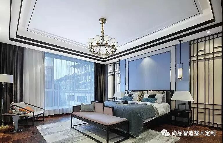 新中式卧室在空间的层次布局上,有着非常高的要求。虽然它讲究“宜设而设,精在体宜”,宜自然而不宜雕琢,但是富有层次的空间形态,是必不可少的。