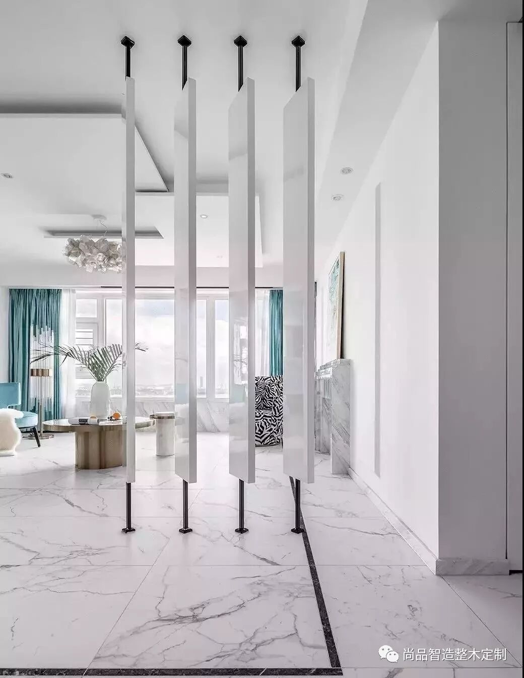 那么家里没有玄关的户型,要怎么补救?这个要分两种情况,如果进门空间比较紧凑,那就想方法放个鞋柜,实现收纳功能,如果进门空间充足,就可以设置一个隔断,实现玄关区的独立。